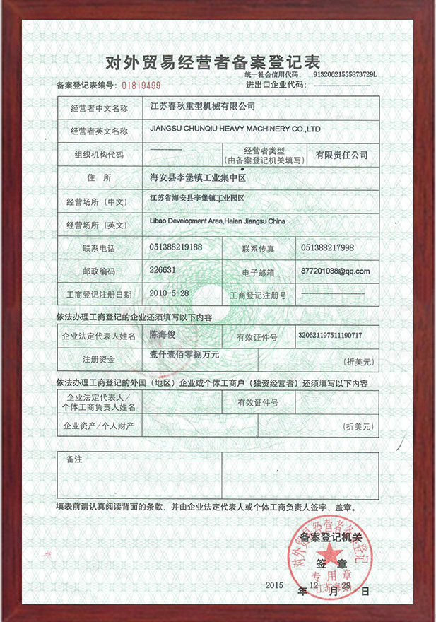 對外貿(mào)易經(jīng)營者備案登記表