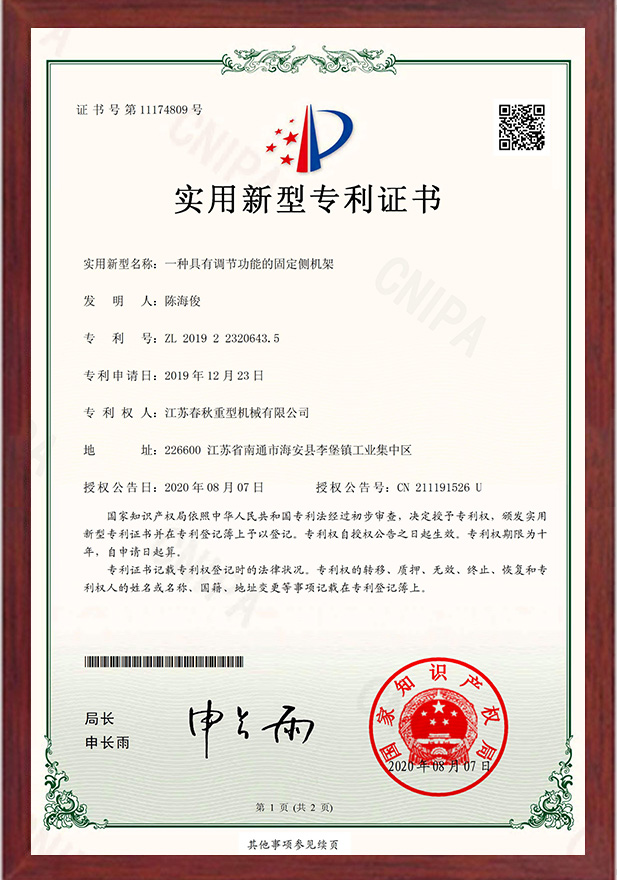 一種具有調(diào)節(jié)功能的固定側(cè)機(jī)架專利