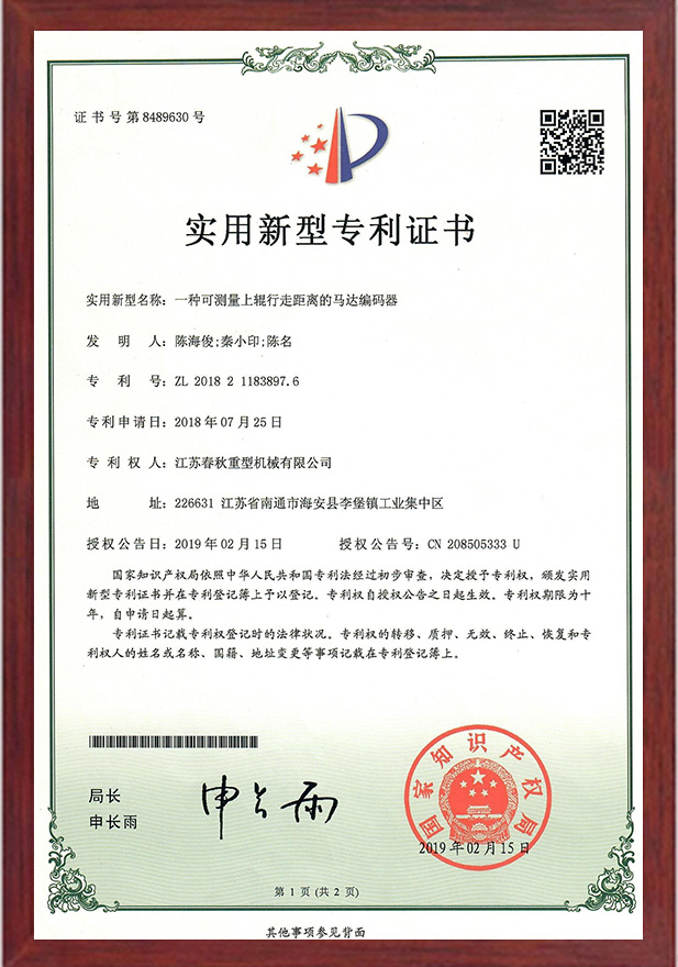 一種可測量上輥行走距離的馬達(dá)編碼器專利