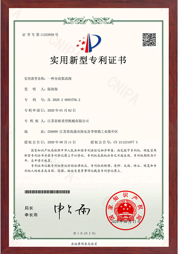 一種分流集流閥專利